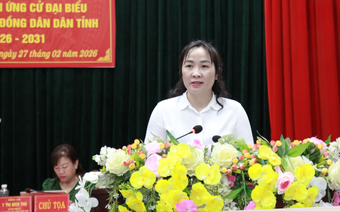 Chủ tịch Hội LHPN tỉnh Quảng Ngãi, trình bày chương trình hành động trước cử tri