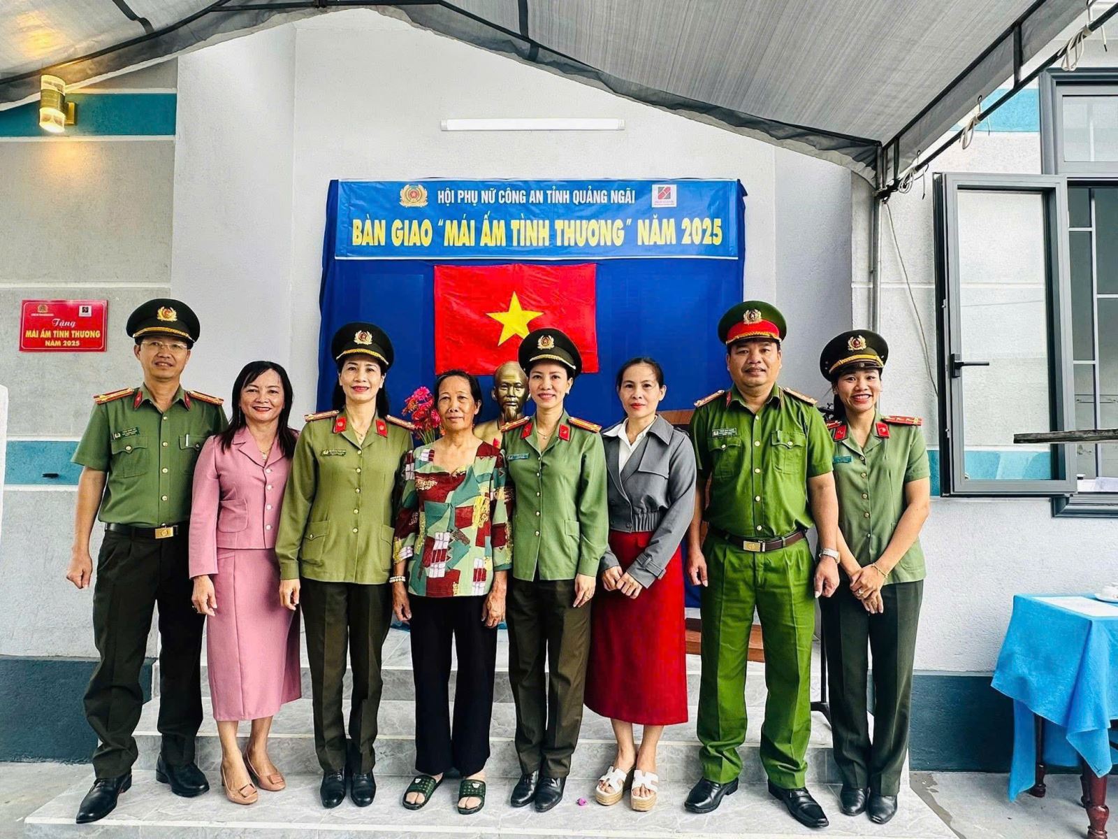 Hưởng ứng chủ trương của TW Hội LHPN Việt Nam và Bộ Công an về xây dựng “Mái ấm tình thương” cho hội viên phụ nữ có hoàn cảnh đặc biệt khó khăn về nhà ở; sáng ngày 25/12/2025, Hội Phụ nữ Công an tỉnh tổ chức Lễ bàn giao "Mái ấm tình thương" năm 2025 cho gia đình bà Huỳnh Thị Lợi (mẹ ruột đ/c Tấn Thành, CA phường Trà Câu) tại TDP Vùng 5, phường Trà Câu, tỉnh Quảng Ngãi).