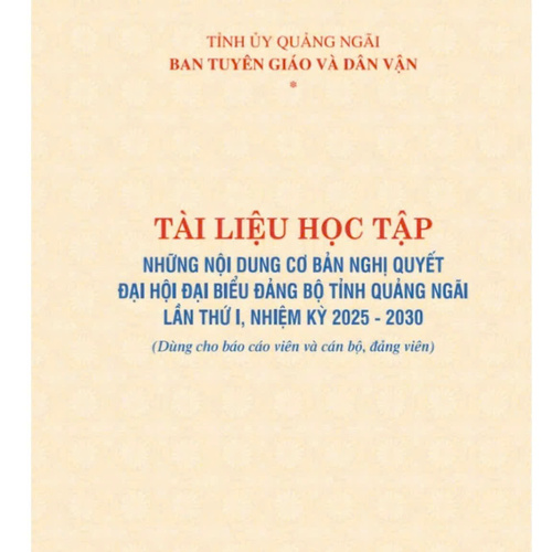 TÀI LIỆU HỌC TẬP NHỮNG NỘI DUNG CƠ BẢN NGHỊ QUYẾT ĐẠI HỘI ĐẠI BIỂU ĐẢNG BỘ TỈNH QUẢNG NGÃI LẦN THỨ I, NHIỆM KỲ 2025 - 2030