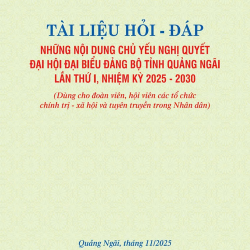 TÀI LIỆU HỎI - ĐÁP NHỮNG NỘI DUNG CHỦ YẾU NGHỊ QUYẾT ĐẠI HỘI ĐẠI BIỂU ĐẢNG BỘ TỈNH QUẢNG NGÃI LẦN THỨ I, NHIỆM KỲ 2025-2030
