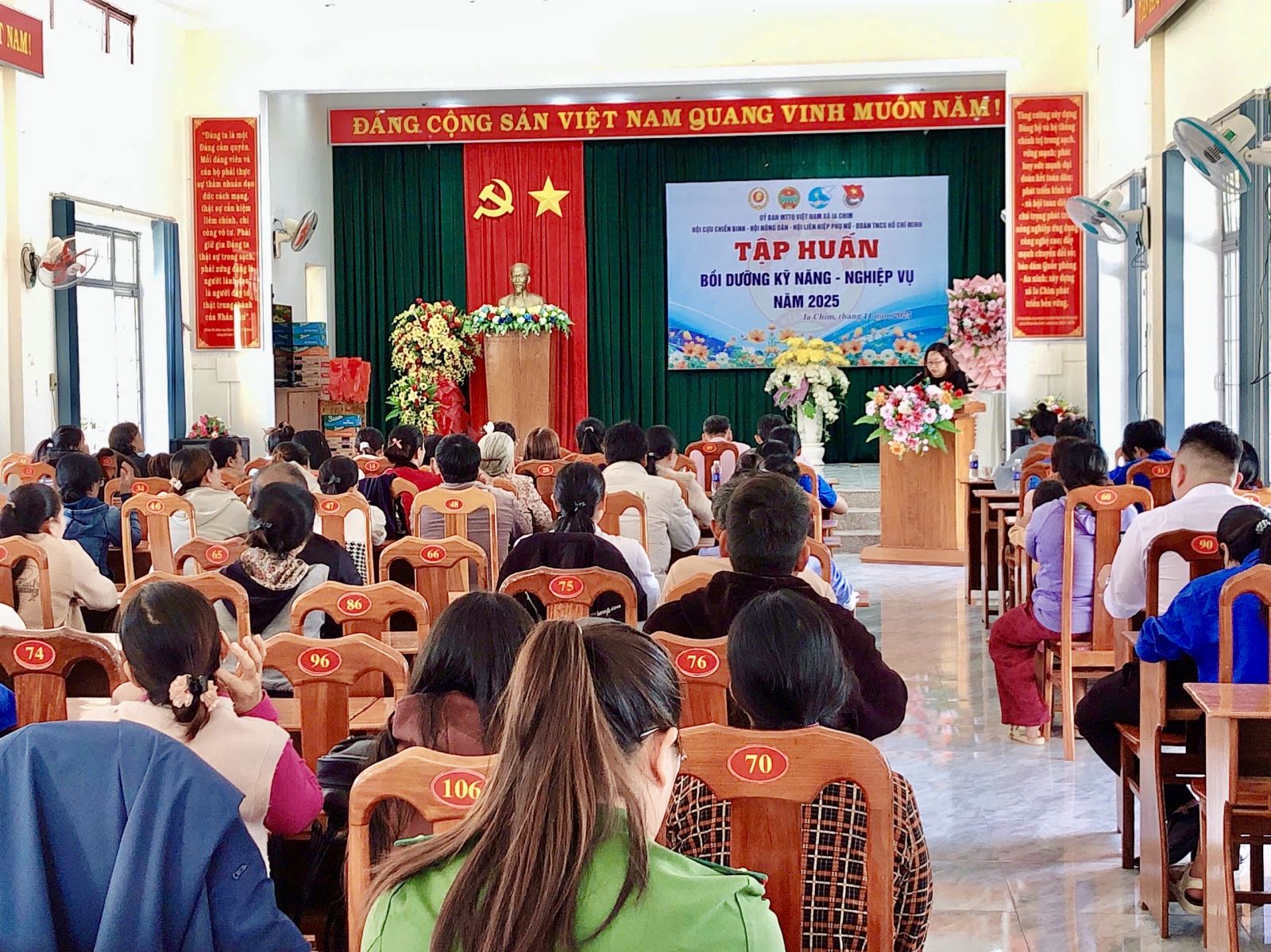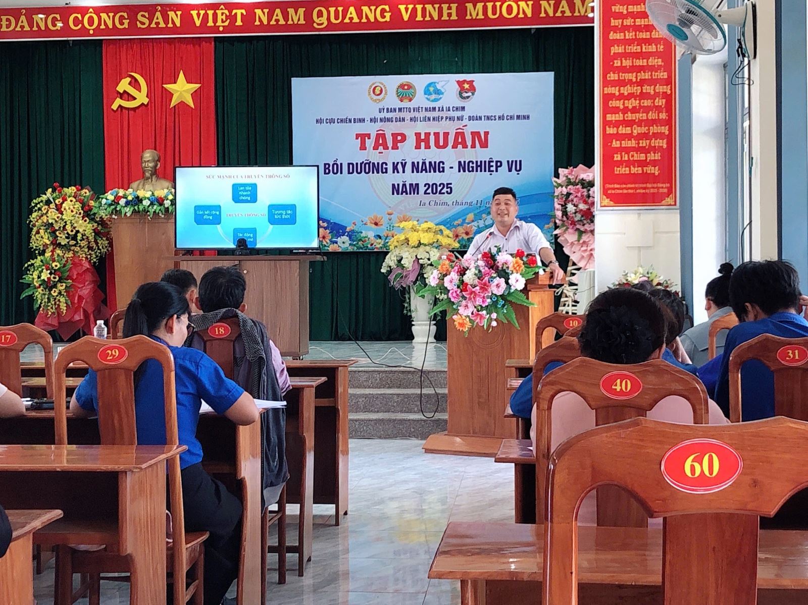Ngày 26/11/2025, tại xã Ia Chim, Hội Phụ nữ, Hội Nông dân, Hội Cựu chiến binh và Đoàn Thanh niên xã phối hợp tổ chức lớp tập huấn nhằm trang bị kiến thức về chuyển đổi số quốc gia và nâng cao nghiệp vụ quản lý vốn ủy thác cho 120 cán bộ, hội viên tham gia.
